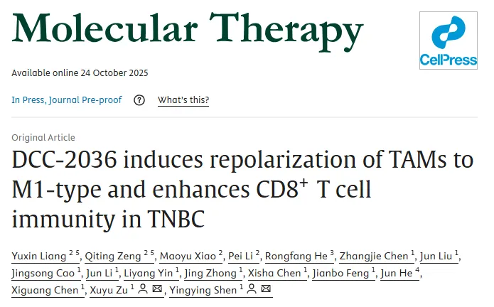 南华附一医院祖旭宇教授/申莹莹教授团队在美国基因与细胞治疗学会(ASGCT)会刊Molecular Theapy上发表最新成果