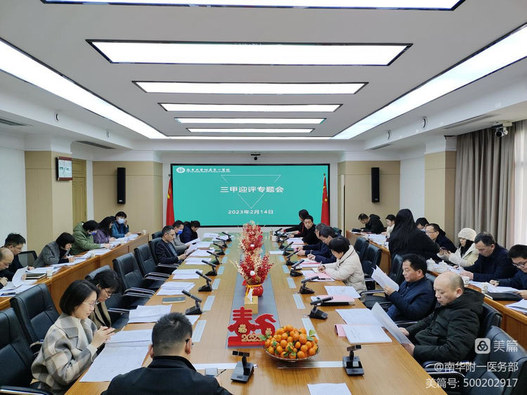 按照省卫健委统一部署,我院即将迎来湖南省三级医院复评。为有序高效推进迎评工作,医院于2023年2月14日14:30在综合楼七楼大会议室召开“南华大学附属第一医院三甲迎评专题会”。