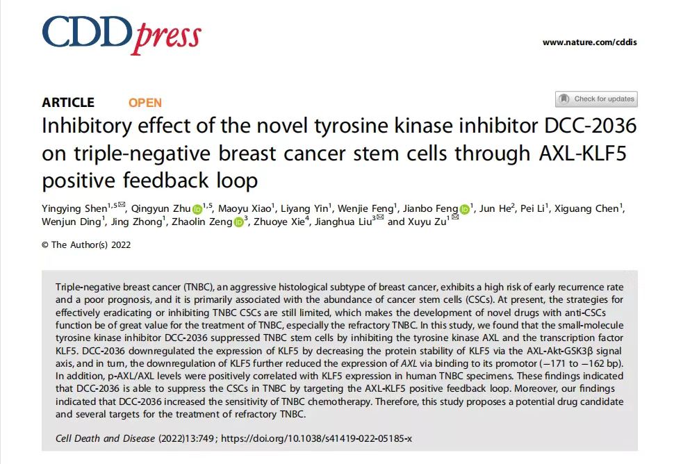 祖旭宇与刘江华教授课题组在国际权威期刊《Cell Death & Disease》发表研究成果