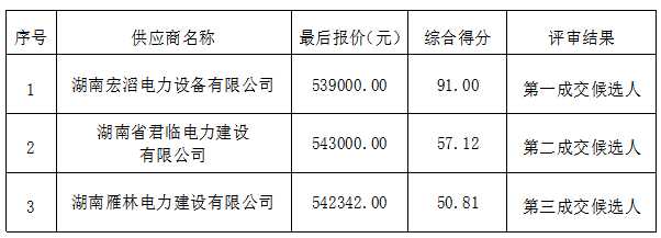成交供应商名称:湖南宏滔电力设备有限公司。