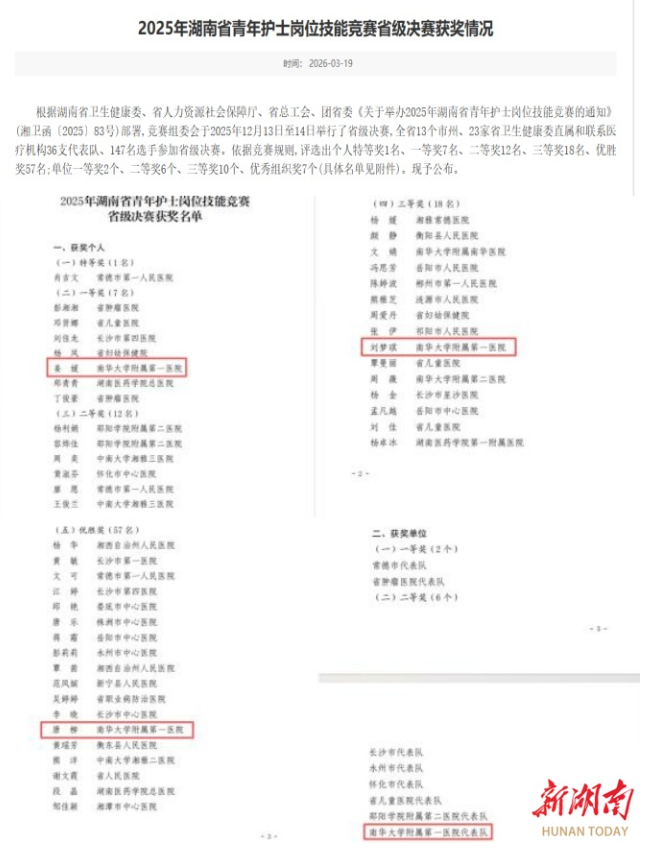 南华附一医院在2025年湖南省青年护士岗位技能竞赛省级决赛中喜获佳绩